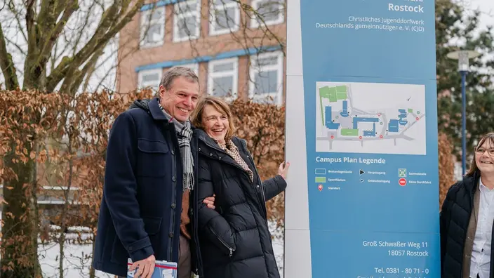 Die CJD Christophorusschule Rostock durfte am 10. Februar 2026 einen besonderen Gast begrüßen: Deutschlands First Lady Elke Büdenbender besuchte am Vormittag den Campus und erhielt vielfältige Einblicke in das Lernen, Leben und Miteinander an unserer Schule. Schulleiter Steffen Kästner hieß sie im Namen der gesamten Schulgemeinschaft herzlich willkommen und gab einen Überblick über die pädagogischen Schwerpunkte des CJD sowie die am Standort gelebte Vielfalt, ein Aspekt, der Frau Büdenbender besonders interessierte.