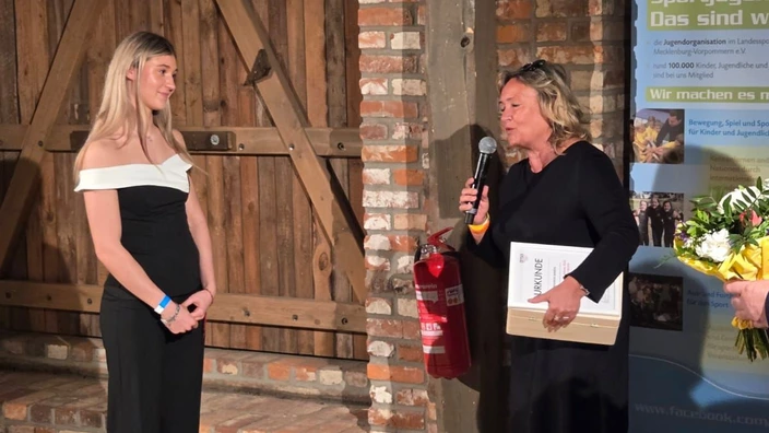 Die Ehrung wurde durchgeführt von der Ministerin für Soziales, Gesundheit und Sport Mecklenburg-Vorpommern Frau Drese, Herrn Bluhm vom Landessportbund und Heike Schröder