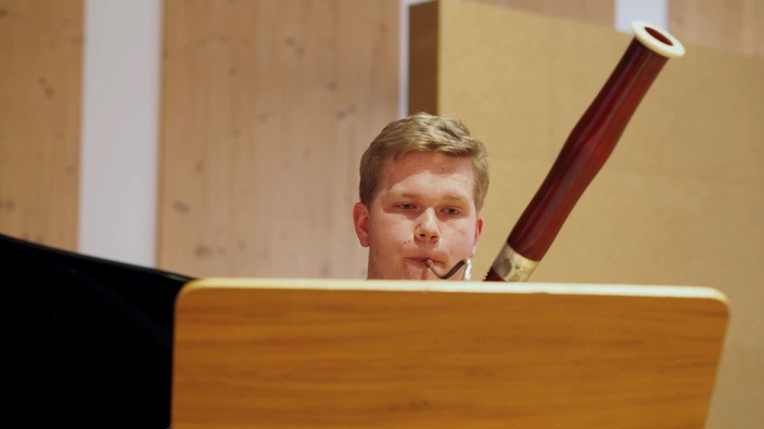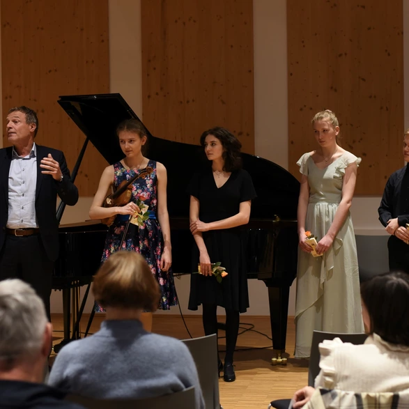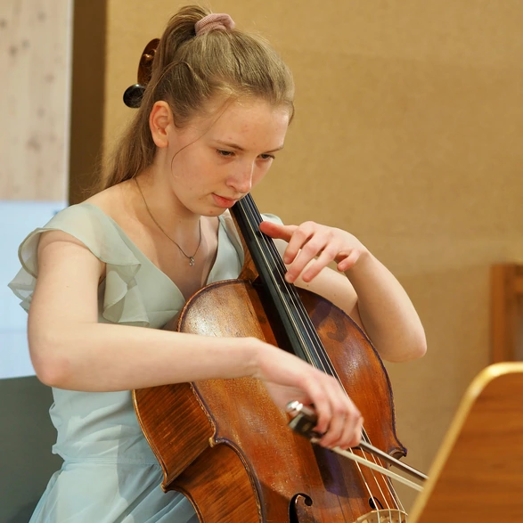 Den Auftakt machte Leonore Lang am Violoncello mit Werken von Johann Sebastian Bach und Dmitri Kabalevsky. Anschließend begeisterten Ferdinand Witt am Fagott und unser ehemaliger Schüler Toby am Klavier mit dem Fagottkonzert von Wolfgang Amadeus Mozart. Friederike Lang verzauberte das Publikum mit ihrer Violine und Stücken von Bach, Brahms und Milstein. Den krönenden Abschluss bildete Varvara Demchenko am Klavier mit virtuosen Werken von Franz Liszt und Felix Mendelssohn Bartholdy.