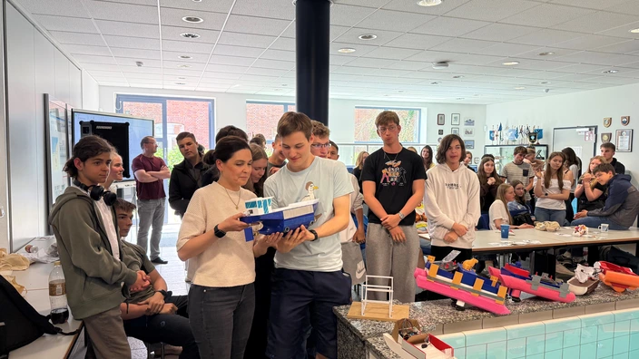 Die Begegnung knüpfte an unser gemeinsames Projekt an, das im vergangenen September begann: Mit dem CAD-Programm Fusion 360 konstruierten wir Boote, die wir anschließend in einem visuellen Projekt zusammensetzten. Beim internationalen Wettbewerb Port2Port der Hochschule Wismar gingen die Boote schließlich an den Start – ein spannender Höhepunkt der Zusammenarbeit.