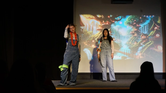 Die Aufführung wurde von den 11., 12. und 13. Klassen an zwei Spieltagen sehr aufmerksam verfolgt. Mit verträumten Kulissen (via Beamer), kreativen Inszenierungen und eigens geschriebenen Dialogen setzte die 12. Klasse ihre Ideen toll um und bot eine besondere Interpretation des Klassikers.