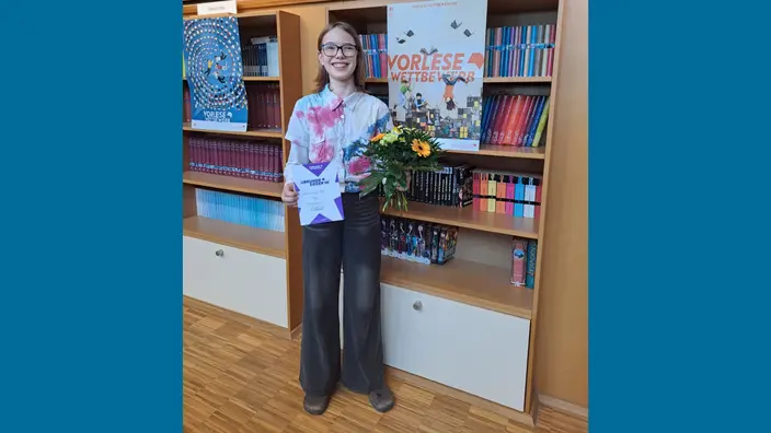 Den Stadtentscheid des Vorlesewettbewerbs der 6. Klassen am 25.02.2026 gewann Lilian Charlotte Plath von der Don-Bosco-Schule. Sie setzte sich gegen ein quantitativ wie qualitativ starkes Teilnehmerfeld aus insgesamt 16 Rostocker Schulen durch. Als Wahltext brachte sie eine Stelle aus dem Buch „Frrk! Mein Alien und ich“ von Nicola Röndigs zu Gehör und sie meisterte souverän den Fremdtext aus „Rocky Winterfeld – Ziemlich neben der Spur“ von Marie Hüttner. Herzlichen Glückwunsch! Lilian zieht nun eine Runde weiter in den Bezirksentscheid ein, wofür wir ihr weiterhin viel Erfolg wünschen!
