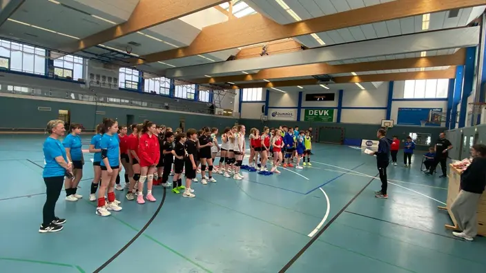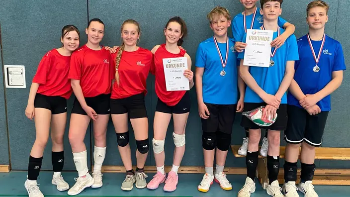 Auch die Mädchenmannschaft des CJD zeigte beim Landesfinale großen Einsatz und spielte ein engagiertes Turnier. Am Ende stand ein sehr guter 4. Platz, der die positive Entwicklung und das hohe sportliche Niveau des Teams widerspiegelt.